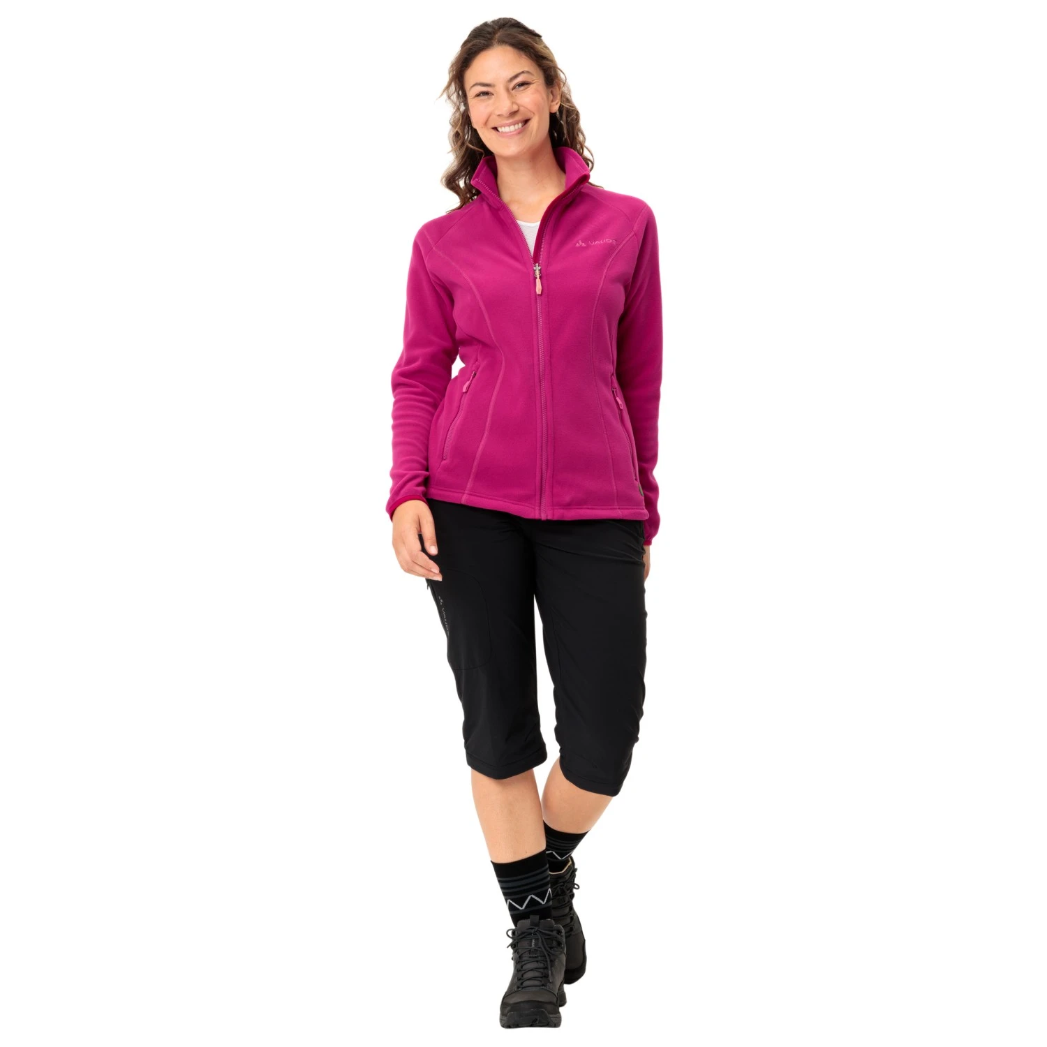 On its own or zipped into a hardshell jacket, the Women’s Rosemoor Fleece Jacket II from Vaude is nothing if not versatile! This jacket is made from Polartec fleece material, which offers soft comfort along with pleasant warmth. Plus, a stand-up collar protects against draughts and the cold. As an added bonus, the jacket can be integrated into a hardshell jacket with ease. Finally, your storage space needs are provided for by the two closable pockets. A functional partner on the hills!